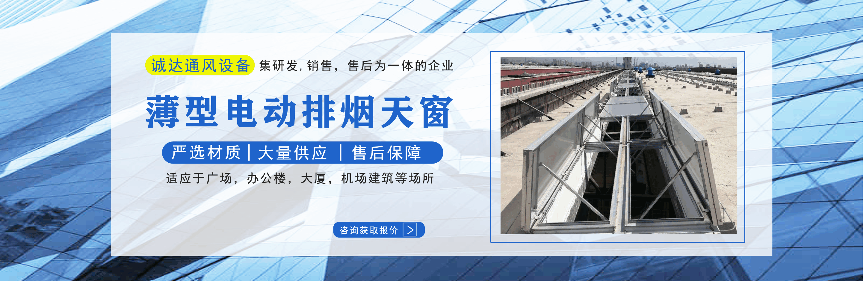 山東誠達通風設備有限公司主營排煙天窗,電動排煙天窗,消防天窗,一字型消防電動排煙天窗,薄型電動排煙天窗等產品,質量可靠,歡迎前來咨詢訂購! 公司憑借雄厚的實力,豐富齊全的規格品種,完善的質量保證,合理的價格,優質的服務,不斷地受到新老用戶及業內人士的肯定和信任,我們本著及用戶之所及,想用戶之所想的服務宗旨不斷地拼搏,進??! 公司真誠的歡迎社會各界朋友蒞臨本公司參觀考察,同時也非常感謝所有新老客戶的信賴和支持。...